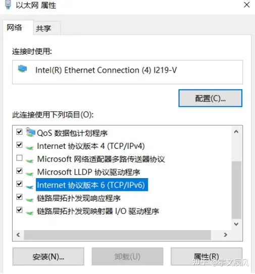 剩下的就是确保 windows 电脑的 internet 协议版本 6(TCP/IPv6)已经勾选