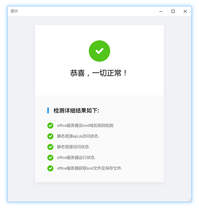 [color=var(--theme-color, #0089d7)]三、配置到可道云[color=var(--theme-color, #0089d7)]1、安装插件管理员登陆-界面右上角菜单-插件中心 (全部)-找到onlyoffice插件,点击安装 [color=var(--theme-color, #0089d7)]2、配置插件如果office和可道云部署在同一台服务器,则无需任何配置 office和可道云不在一台服务器:点击配置插件,将上面office所在服务器ip替换到如图选中的内容(注意结尾/web/不能去除); 点击"检测office服务器",如果检测通过这说明全部配置完成,刷新可道云页面,选中一个office文件右键打开方式,选择onlyoffice编辑即可体验。 检测结果无误如下图:  注意: - 上面配置ip也可以是绑定了到该服务器的域名,不能为localhost;
