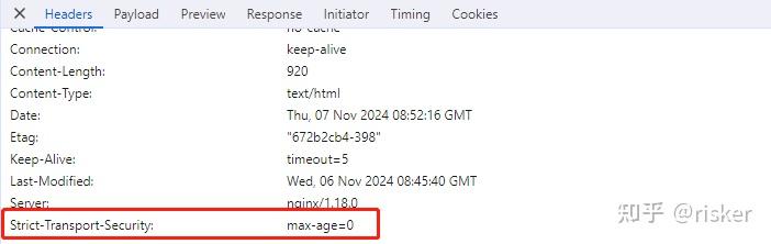 2、添加请求响应头Strict-Transport-Security: max-age=0