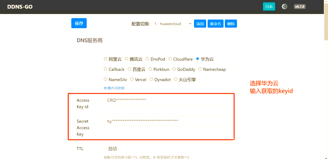 获取域名解析服务商的API密钥 在您所选的DNS服务商处,按照以下步骤操作以获取API密钥: 阿里云: 登录阿里云控制台,前往“访问控制”页面,创建并获取AccessKey ID和AccessKey Secret。 腾讯云: 登录腾讯云控制台,进入“API密钥管理”页面,获取SecretId和SecretKey。 Cloudflare: 访问Cloudflare官网,进入“API Tokens”页面,创建并获取API令牌。 华为云: 登录华为云官网,进入“我的凭据”页面,添加访问秘钥。 2、配置域名解析 在“域名”字段中,输入您已注册的域名,例如“example.com”。接着,在“记录类型”中选择适当的类型,例如“A”代表IPv4地址,或“AAAA”代表IPv6地址。您也可以选择当前的公网IP作为备用选项。接下来,设置子域名,例如“nas.example.com”。最后,保存您的配置。 3、通过套件中心安装DDNS-GO,并启动它。默认的用户名和密码都是admin。 在完成DDNS-GO的安装与启动后,确保关闭ipv6功能,然后进行保存设置。接下来,您可以查看动态解析日志,如果看到相关成功提示信息,则表示动态域名解析已经顺利完成。 四、常见问题解答(FAQ)